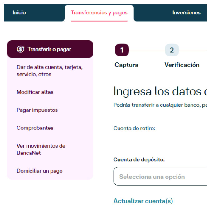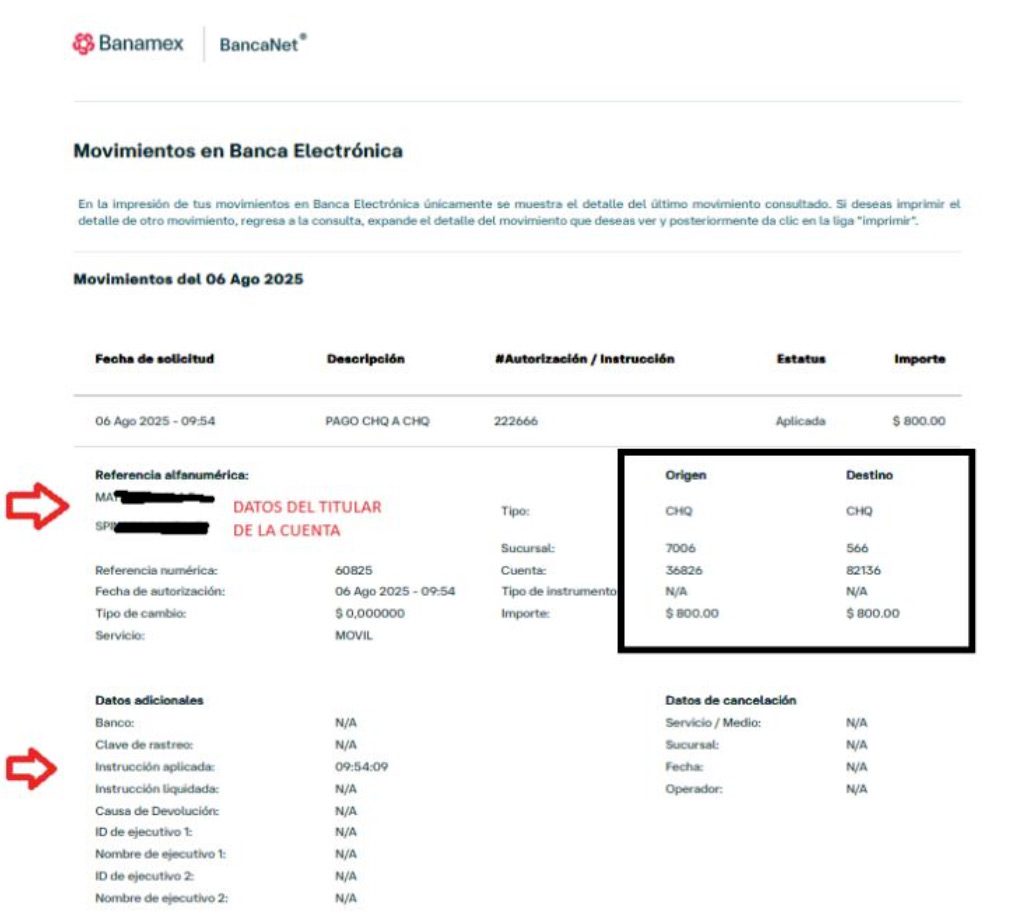 Y si tu banco es Banamex, debes entrar a Bancanet desde tu computadora al apartado de «Transferencias y pagos / Ver movimientos de BancaNet»